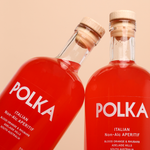 To make our Non-Alc Italian Spritz, pour 30-40mls of Italian Aperitif over ice, add POLKA sparkling and top with soda water. Garnish with a slice of dried orange or rosemary.